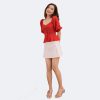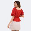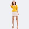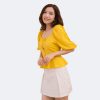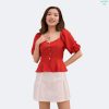 👉Áo kiểu nữ tay phồng, cổ vuông ôm sát cơ thể 2 màu: ĐỎ GẠCH, VÀNG NGHỆ tạo nên sự cá tính khi phối với chân váy, quần short.